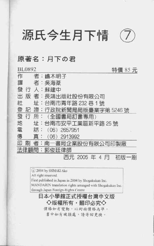 《源氏今生月下情》目录