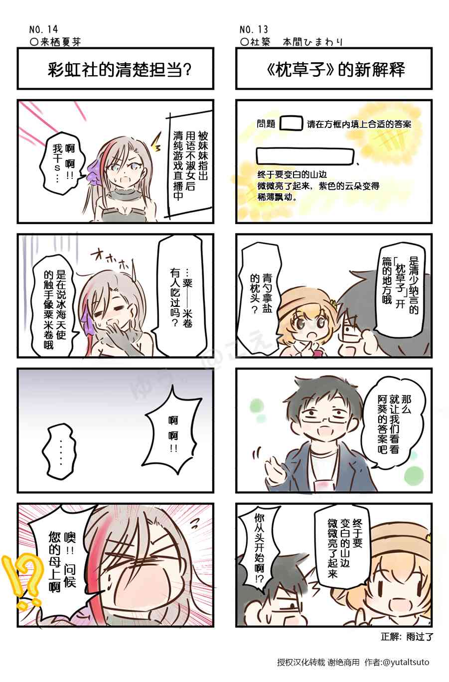 彩虹社名场面四格漫画
